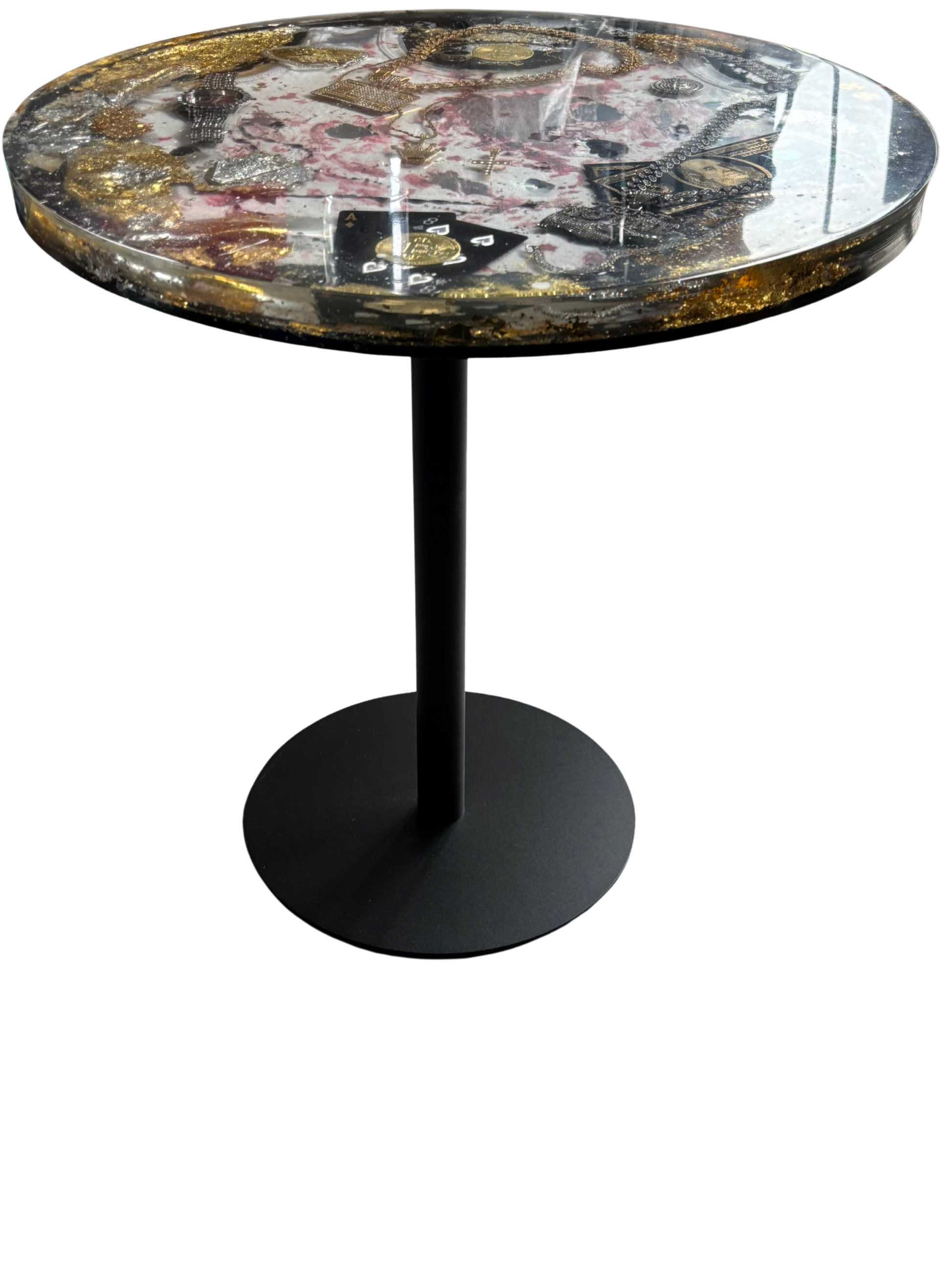Jedes Element ist in glasklarem Epoxidharz versiegelt – kein Tisch gleicht dem anderen.
